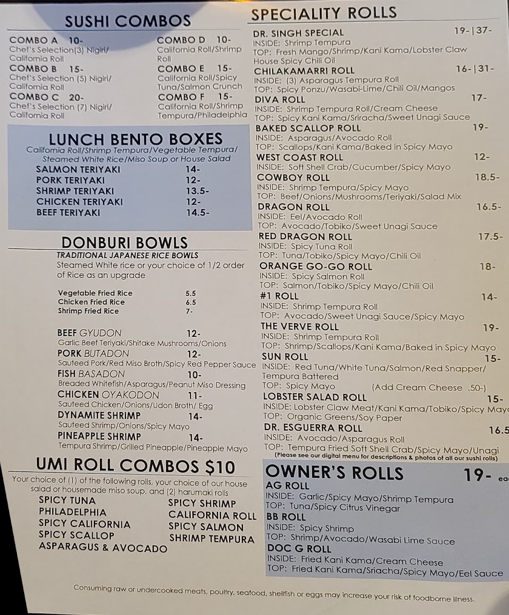 Umi Fort Wayne offers a diverse and enticing menu that caters to a wide range of tastes, with an impressive selection of both land and sea options, as well as unique specialty rolls. For sushi lovers, the Specialty Rolls like the #1 Roll, Dr. Esguerra Roll, and The Verve Roll promise an unforgettable experience. The Rock Roll and Orange Go-Go Roll are also standout choices, each bringing its own bold flavors.