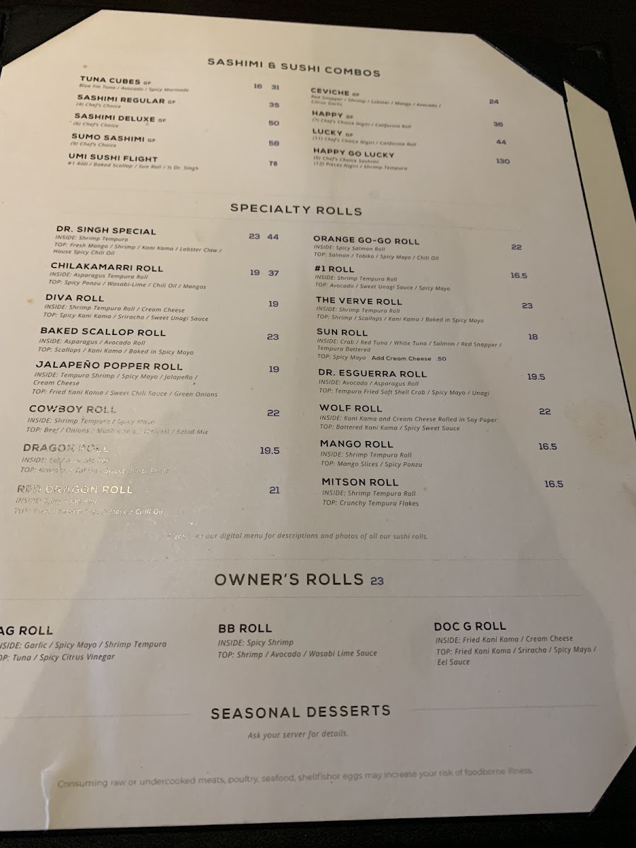 1 roll, baked scallop, sun roll, 1/2 Dr Singh.